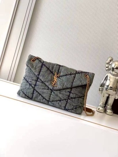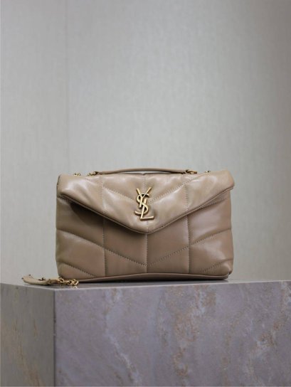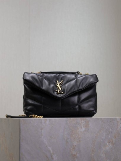 YSL SAINT LAURENT PUFFER LOGO PLAQUE SMALL SHOULDER BAG กระเป๋าทรง Puffer ดีไซน์ควิลท์พองนุ่ม ให้สัมผัสละมุนเหมือนโอบกอดก้อนเมฆ ผลิตจากหนังลูกวัวแท้ เนื้อหนังนุ่มมาก ผิวละเอียด ให้ความรู้สึกหรูและสบายมือ ดีเทลโลโก้ โซ่ และอะไหล่โทนทองแบบทำผิววินเทจ เพิ่มความเท่แบบย้อนยุค แต่ยังดูโมเดิร์น ขนาด 23×15.5×8.5 ซม. อุปกรณ์ full box set สินค้าพร้อมส่ง❤️