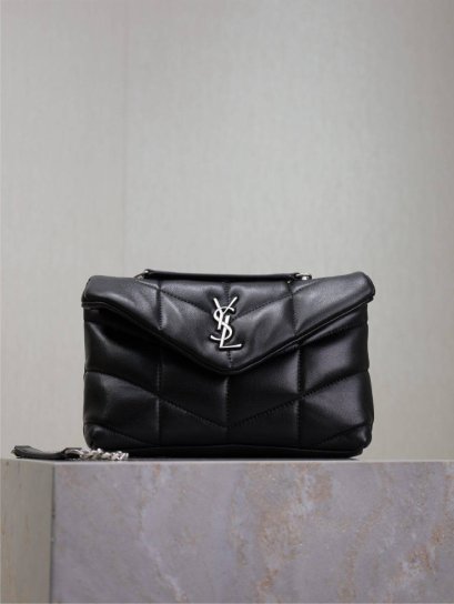 YSL SAINT LAURENT PUFFER LOGO PLAQUE SMALL SHOULDER BAG กระเป๋าทรง Puffer ดีไซน์ควิลท์พองนุ่ม ให้สัมผัสละมุนเหมือนโอบกอดก้อนเมฆ ผลิตจากหนังลูกวัวแท้ เนื้อหนังนุ่มมาก ผิวละเอียด ให้ความรู้สึกหรูและสบายมือ ดีเทลโลโก้ โซ่ และอะไหล่โทนเงินแบบทำผิววินเทจ เพิ่มความเท่แบบย้อนยุค แต่ยังดูโมเดิร์น ขนาด 23×15.5×8.5 ซม. อุปกรณ์ full box set สินค้าพร้อมส่ง❤️