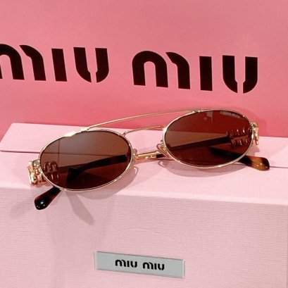 Miu Miu Eyewear Irregular-Frame Sunglasses งานสวยสุด คุณภาพดีสุด กันแดดเต็มประสิทธิภาพ UV400 มาพร้อมกล่องกล่อง Full set box