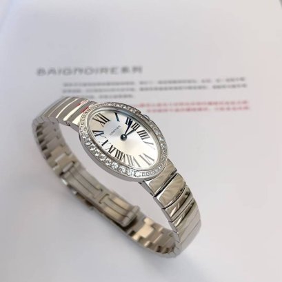 Baignoire de Cartier / oval shape Silver with single line diamonds Width 23mm . length 31mm คาร์เทียร์ นวัตกรรมและเรโทร อิมแพค ความงาม / เพชรเงินวงกลมเดี่ยว ไบญอยร์นาฬิกาคาร์เทียร์ชุดอ่างอาบน้ำ การออกแบบรูปไข่ฝรั่งเศสหรูหรา สร้อยข้อมือแหวนพร้อมหัวเข็มขัดพับซ่อน กรณีโค้งเล็กน้อยพอดีโค้งข้อมือ ด้วยการเคลื่อนไหวควอตซ์สวิส ดับเหล็กชี้ดาบสีน้ำเงิน กระจกสวมทน ความกว้าง 23 มม ความยาว 31 มม