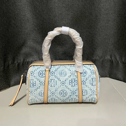 Tory Burch | T Monogram Denim Mini Barrel ลาย T Monogram สุดคลาสสิก ผ้าทอสวยหรู งารดีสุด ❤️