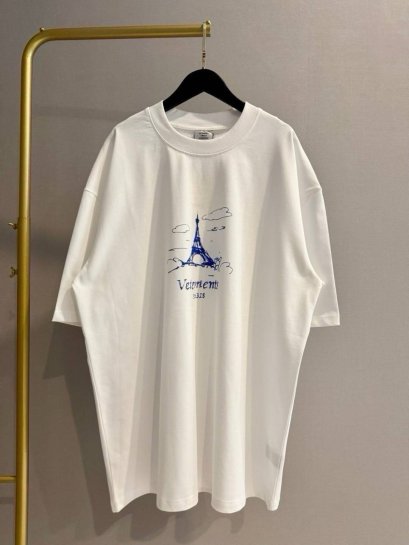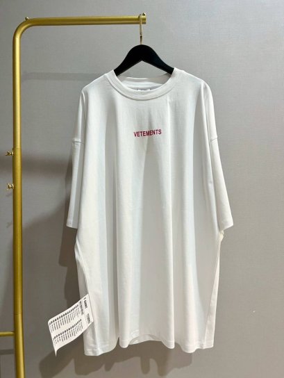 VETEMENTS White Embroidered Logo Oversized T-shirt สินค้าพร้อมส่ง งานดีสุดคะ