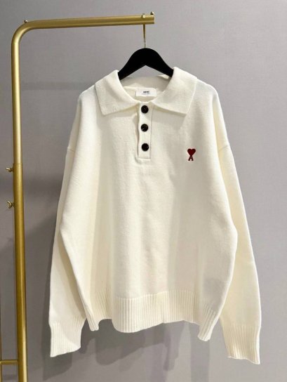 TAUPE WOOL AMI DE COEUR POLO สินค้าพร้อมส่งงานดีสุด สวยถูกใจแน่นอนค่ะ ❤️ ขนาด บ่า อก ยาว S=22/42/23 M=23/44/24 L=24/46/25 XL=25/48/26 สินค้าพร้อมส่ง❤️