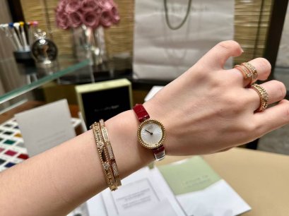 Van Cleef & Arpels รุ่นใหม่ล่าสุด ผลงานใหม่ของ Perlee|ผลงานชิ้นเอกของ Jinzhu มีการเปิดตัวที่เปล่งประกาย ใช้เงินก้อนใหญ่เพื่อซื้อเวอร์ชัน ZP ซึ่งคืนรายละเอียดทั้งหมดของเวอร์ชันดั้งเดิม 1:1 หน้าปัดขนาด 23 มม. ซึ่งเป็นงานฝีมือจิวเวลรี่ของโครงสร้างทองคำ 18k เคลือบด้วยไฟฟ้า ซึ่งเข้ากันกับกลไก ETA Swiss Ronda 1042 ตัวเรือนทอง 18K เคลือบด้วยไฟฟ้านั้นขัดเงาด้วยงานฝีมือจิวเวลรี่ งานฝีมือที่สมบูรณ์แบบ เม็ดบีดของตัวเรือนทรงกลมนั้นกลมและเต็ม และโครงสร้างภายในทั้งหมดของตัวเรือนได้รับการบูรณะให้เป็นดีไซน์ดั้งเดิมของ ZP ซึ่งสมบูรณ์แบบอย่างยิ่ง ไม่มีมุมตัด มีหน้าปัดแบบกิโยเช่และหน้าปัดมาเธอร์ออฟเพิร์ลที่แกะสลักด้วยมือทั้งหมด เป็นการยากที่จะคืนสภาพโครงสร้างสามมิติของหน้าปัดในอัตราส่วน 1:1 กระบวนการของหน้าปัดแบบเปลือกหอยนั้นใช้เวลานานและสิ้นเปลืองวัสดุ หน้าปัดเกรด A ทรงโดมที่ปรับแต่งเองแบบส่วนตัวนั้นเหมือนกับหน้าปัดรุ่นดั้งเดิมที่โปร่งใสมากและมีราคาแพง และสายผ้าซาติน ซีรีส์ Perlée เต็มไปด้วยความสุขและความนุ่มนวล เผยให้เห็นถึงเสน่ห์อันประณีตของเม็ดทองคำ K เส้นที่สดใสของนาฬิกานำเสนอวิธีการจับคู่ที่หลากหลาย ช่วยให้ผู้สวมใส่ได้แสดงสไตล์ส่วนตัวที่เป็นเอกลักษณ์ของเขา การผสมผสานระหว่างงานฝีมืออัญมณีและทักษะการผลิตนาฬิกา ได้รับการตีความใหม่ สุนทรียศาสตร์สุดคลาสสิกของคอลเลกชั่น Perlée!