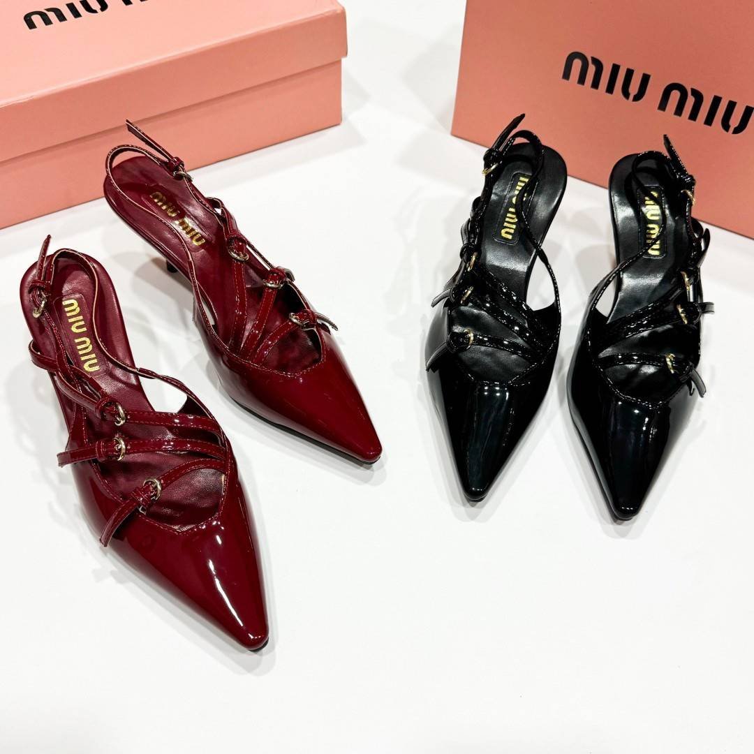 New Arrivals Miu Miu Runway Brushed leather slingbacks with buckles สูง 55mm Size 36/37/38/39/40 มาพร้อมกล่อง ถุงผ้าตามรูป * ถ่ายรูปจากสินค้าจริง ————————————