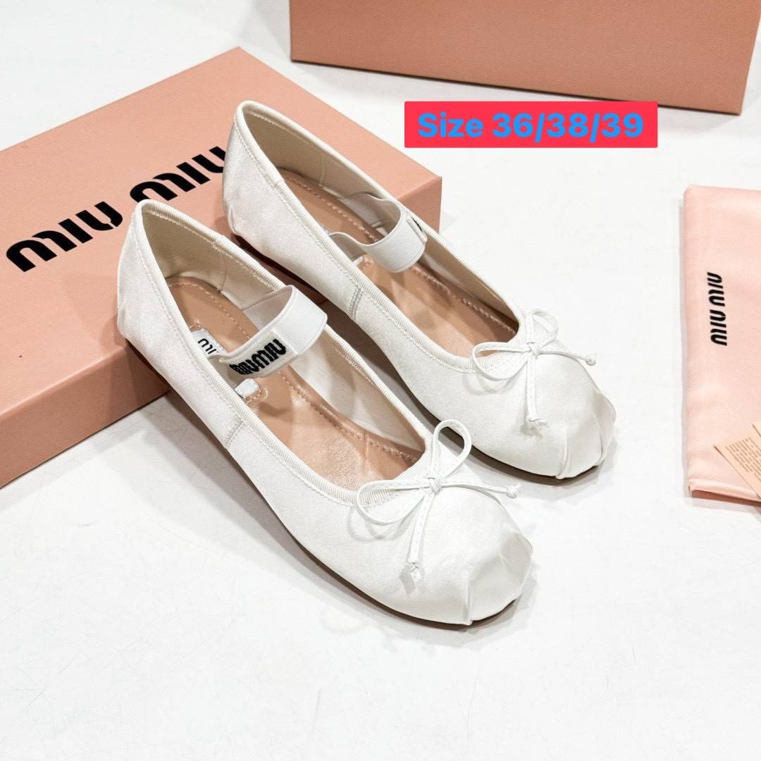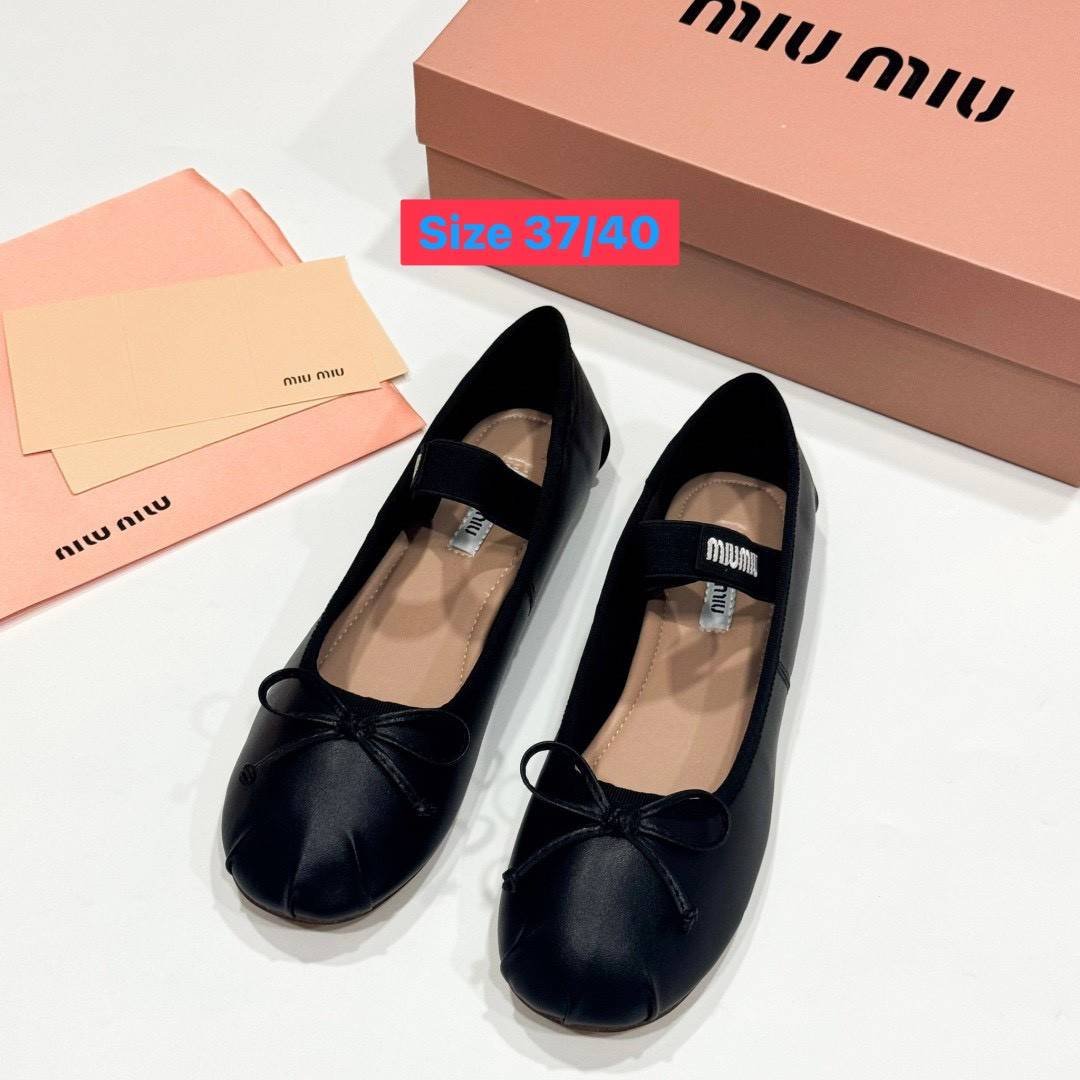 Update Sized MIU MIU Logo Band Bow-Detailed Ballerinas Size ตามรูป มาพร้อมกล่อง ถุงผ้าตามรูป * ถ่ายรูปจากสินค้าจริง