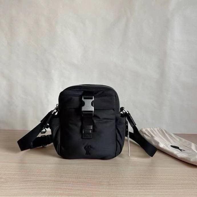 AMI PARIS Black Ami de Coeur Crossbody Bag “Ami ใบนี้คือดีมาก! ใส่ได้ทุกลุค ผ้าเป็นไนลอนนำเข้ากันน้ำได้ด้วยน้า~ช่องเก็บของเยอะ ใช้ได้ทั้งชายหญิง สะพายชิคๆ ได้ทุกวัน
